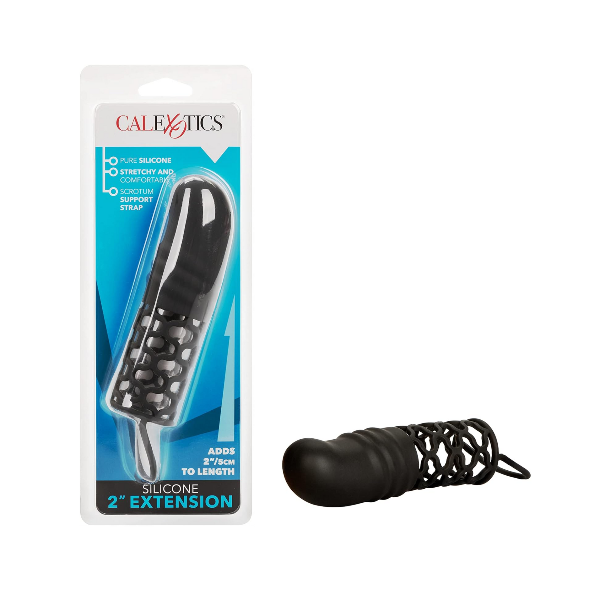 ¡Aumenta el tamaño de tu pene y mejora tu rendimiento en la cama con el extensor de silicona CalExotics! Con una funda suave de 5 cm y un anillo de soporte, este producto te brinda una experiencia de placer inigualable. ¡Haz tus sueños realidad y sorprende a tu pareja!
